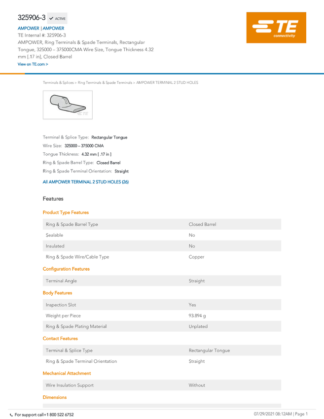 TE Connectivity 325906-3 TE AMP AMPOWER, 1 szt.