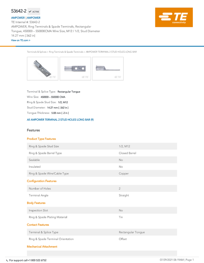 TE Connectivity 53642-2 TE AMP AMPOWER, 1 szt.