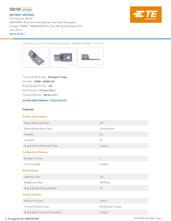 TE Connectivity 326103 TE AMP AMPOWER, 1 szt.