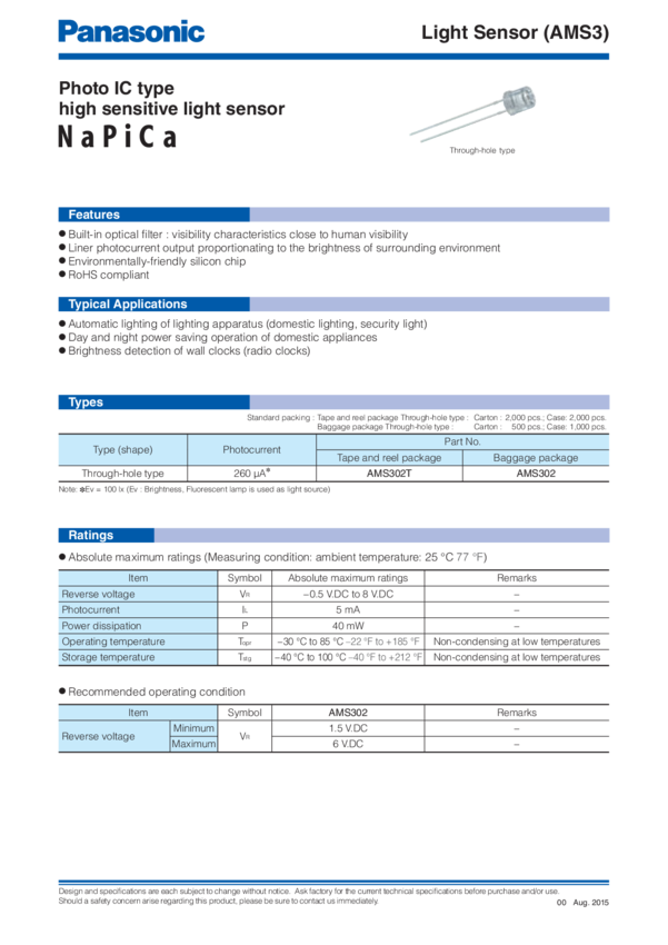 Light to Current Ambient Light Sensor Analog(Current) O/P 2-Pin T/R