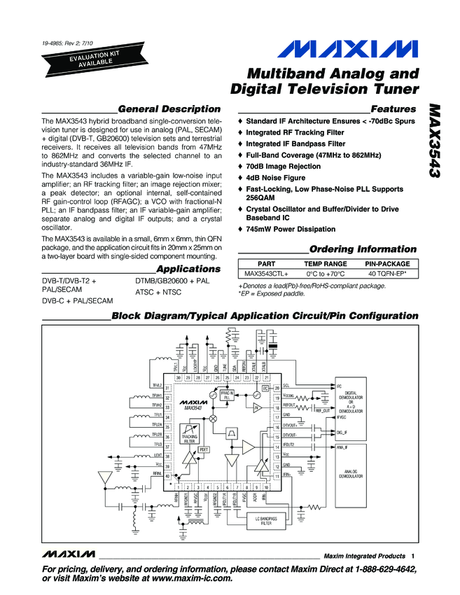 MAX4617, MAX4618, MAX4619 High-Speed, Low-Voltage, CMOS Analog Multiplexers/Switches