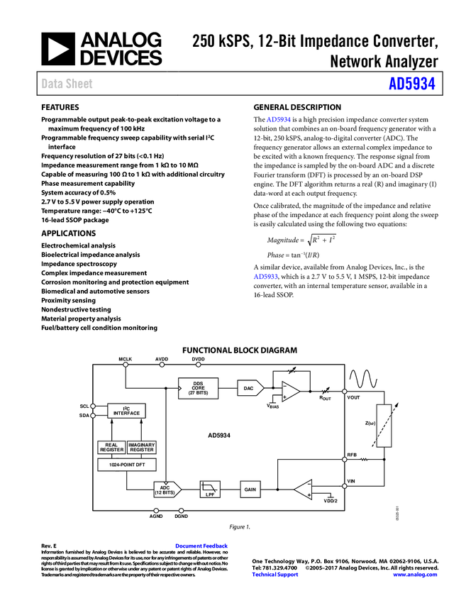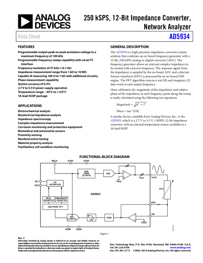AD5933: 1 MSPS, 12 Bit Impedance Converter Network Analyzer