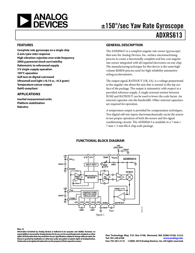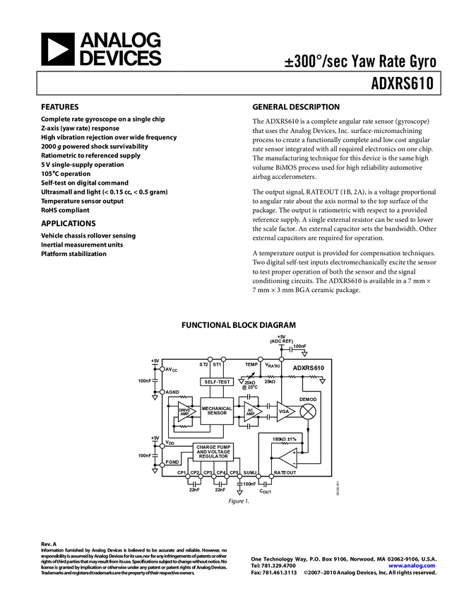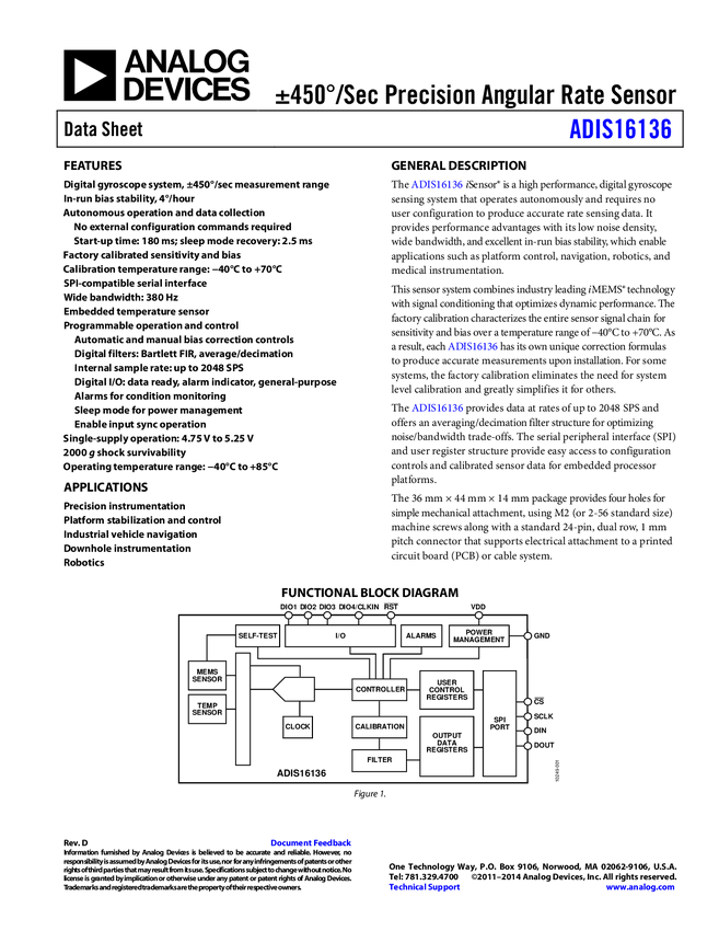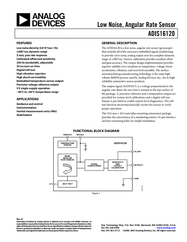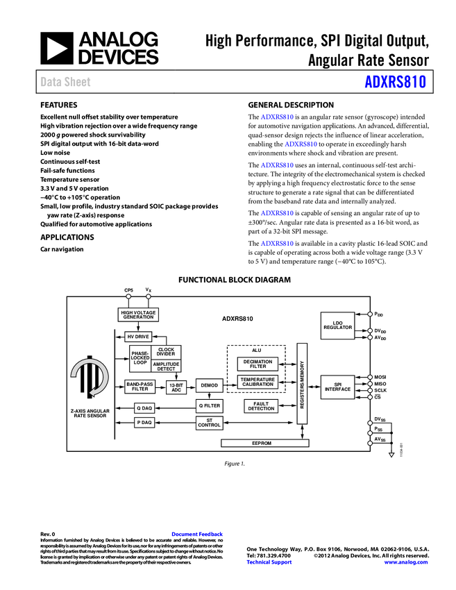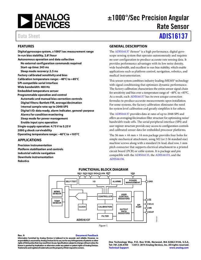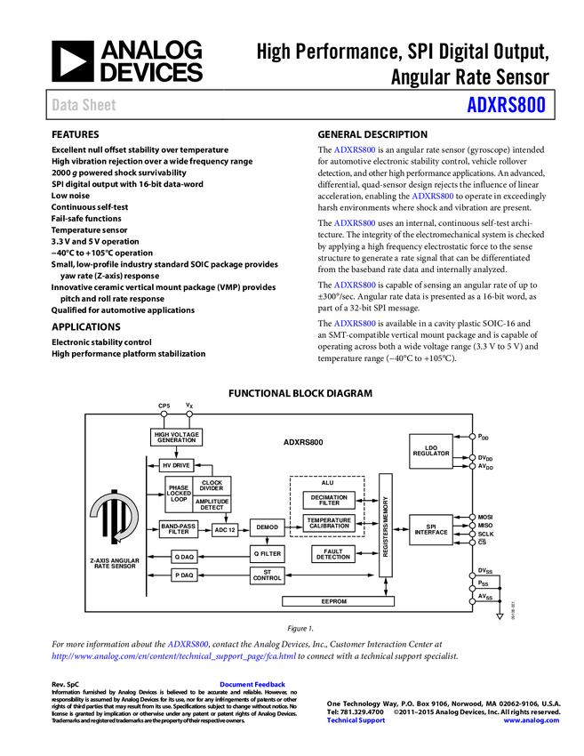 High Performance, SPI Digital Output, Angular Rate Sensor
