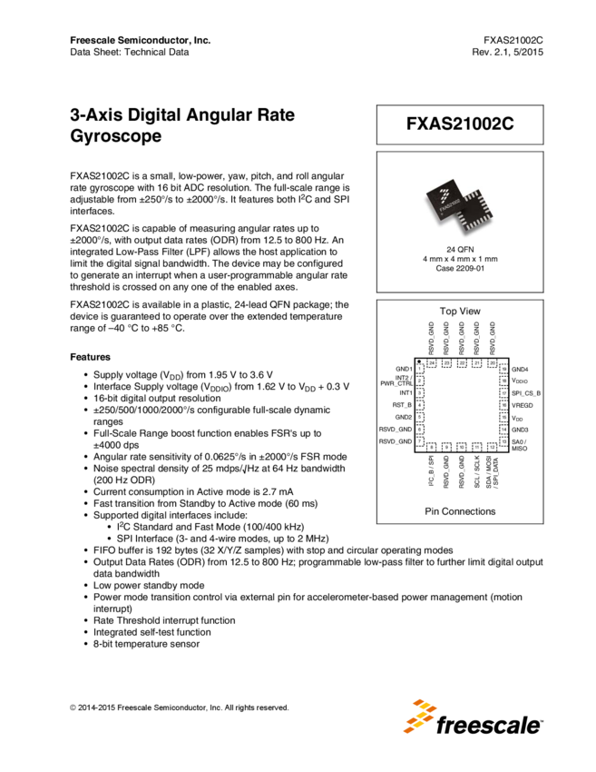 FXAS21002C: NXP 3-Axis Digital Angular Rate Gyroscope