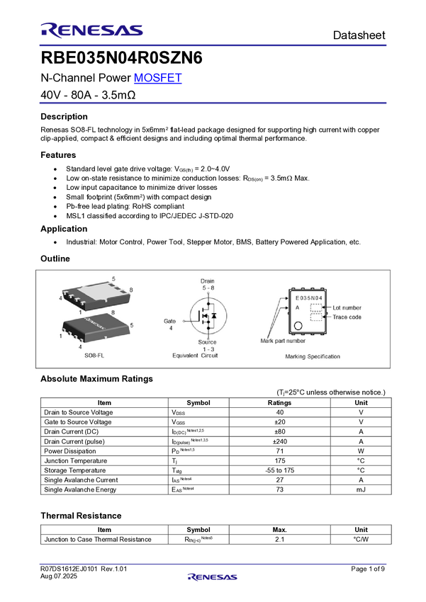 ANL4 N-Channel Power MOSFET 40V–80A–3.5mΩ–SO8-FL