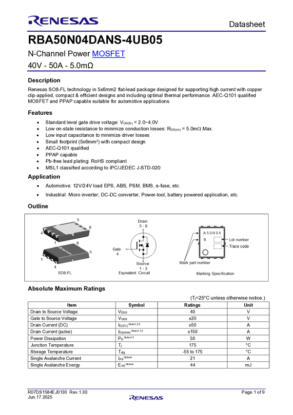 ANL4 N-Channel Power MOSFET 40V–50A–5.0mΩ–SO8-FL 5x6