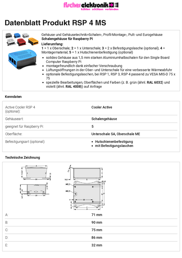 Obudowa SBC Fischer Elektronik Raspberry Pi® aluminium aluminiowy (anodowany)