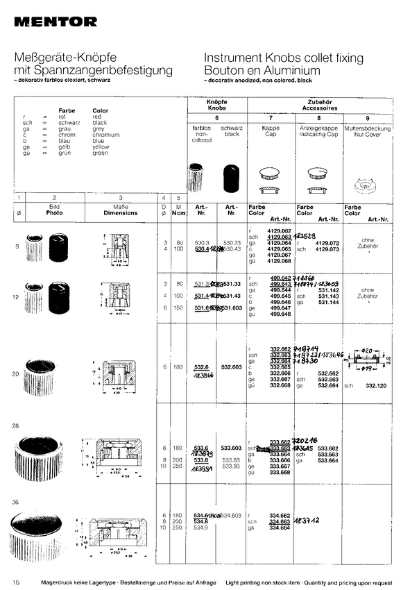 Mentor 531.4 531.4 Pokrętło aluminiowy (anodowany) (Ø x W) 12 mm x 15 mm 1 szt.