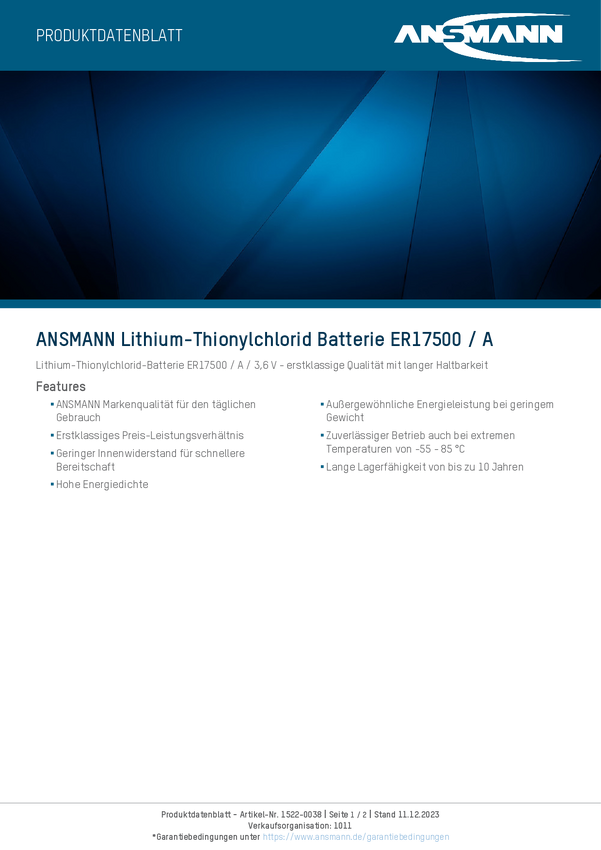 Bateria A Ansmann, 3.6 V, litowe, 1 szt.