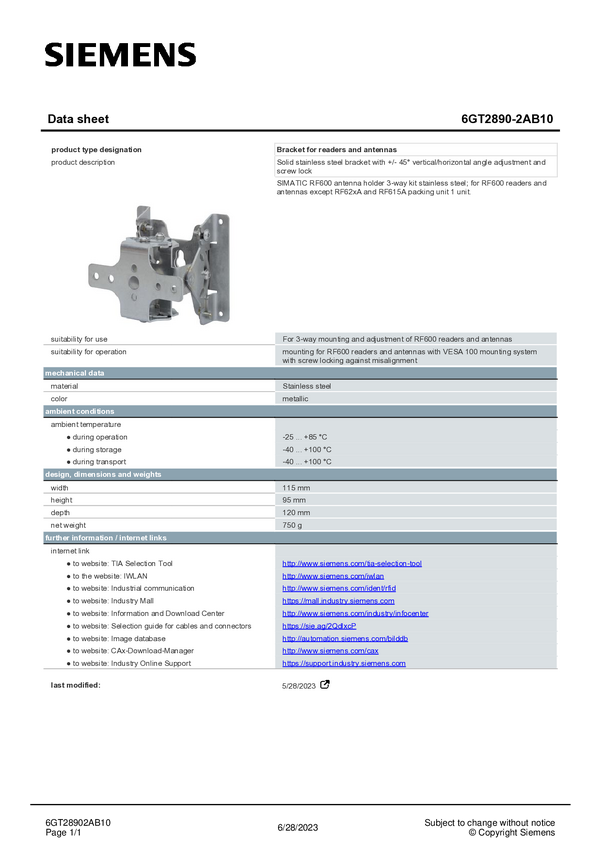 Siemens 6GT2890-2AB10 Uchwyt anteny