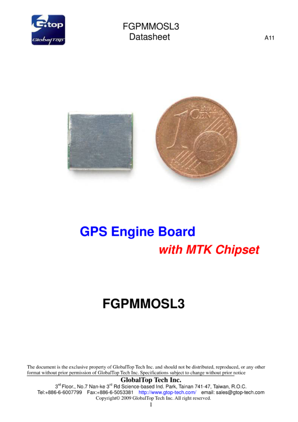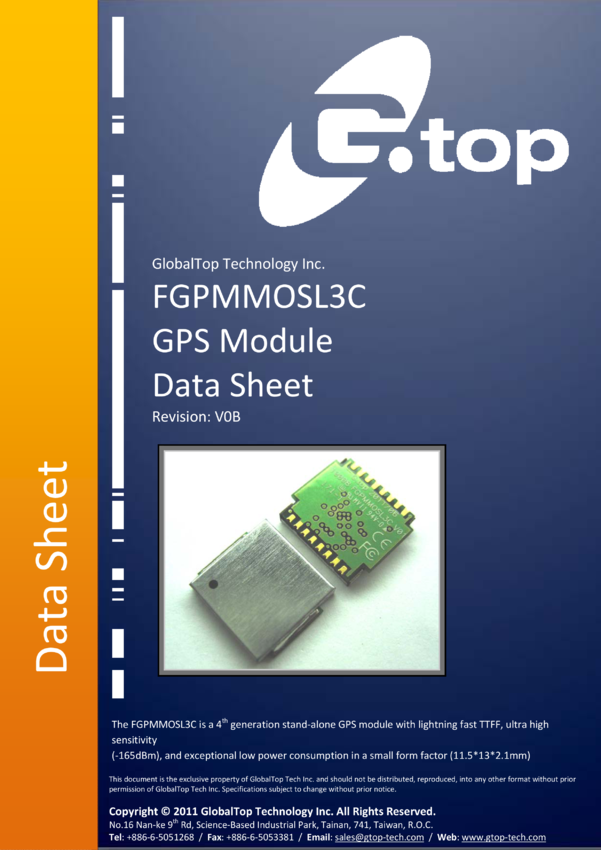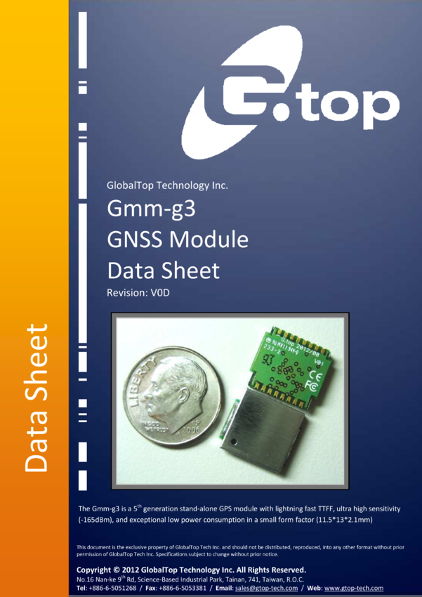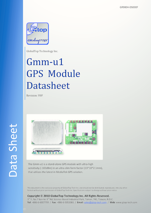 Moduł odbiornika GPS GMM-G3, , MT3333, bez anteny, 11.5 x 13.0 x2.1mm