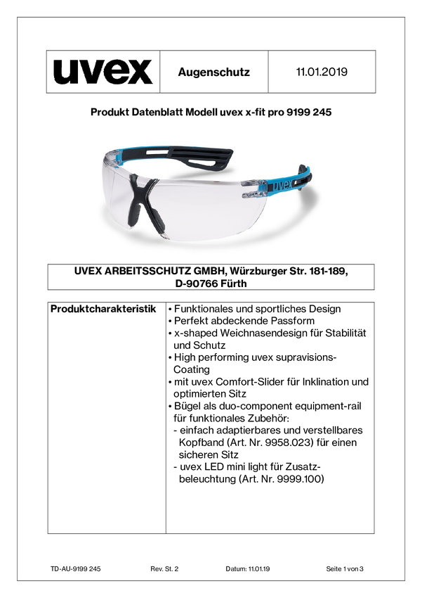 uvex x-fit pro 9199245 Okulary ochronne z ochroną UV niebieski, antracytowy