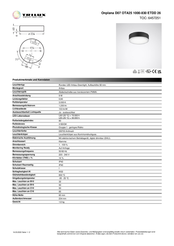 Lampa sufitowa LED Trilux Onplana D07 #6457251 6457251 9 W 1200 lm antracytowy