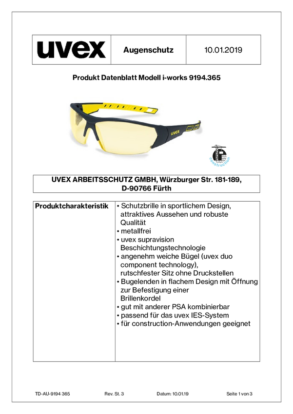 uvex i-works 9194365 Okulary ochronne z ochroną UV antracytowy, żółty