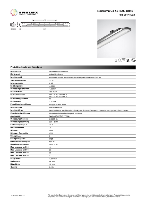 Trilux Nextrema G3 #6629540 Lampa LED do wilgotnych pomieszczeń LED 27 W biały antracytowy