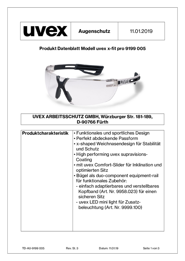 uvex x-fit pro 9199 9199005 Okulary ochronne z ochroną UV biały, antracytowy