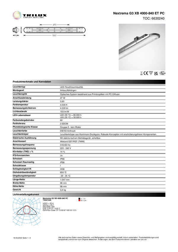 Trilux Nextrema G3 #7368851 Lampa LED do wilgotnych pomieszczeń LED 39 W biały antracytowy