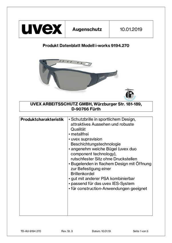 uvex i-works 9194270 Okulary ochronne z ochroną UV antracytowy, szary