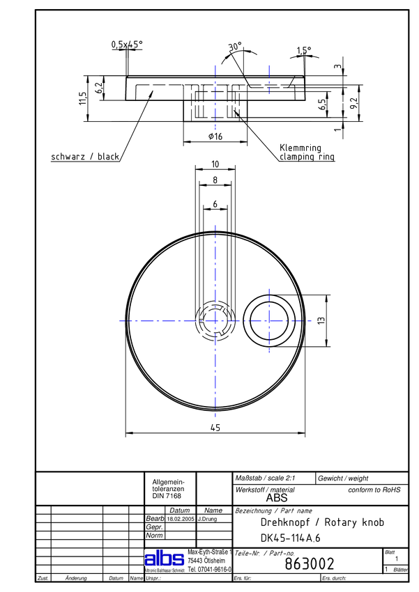 ALPS 863002 863002 Pokrętło z uchwtem palcowym antracytowy 1 szt.