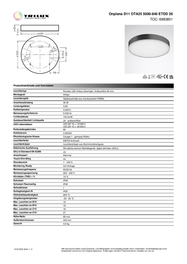 Trilux LIQ50AB2L #6947840 6947840 Lampa LED górna/boczna LED brak 36 W antracytowy