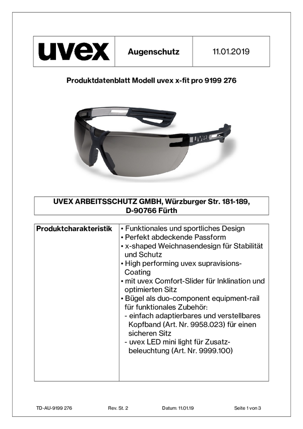 uvex x-fit pro 9199276 Okulary ochronne z ochroną UV antracytowy, jasnoszary