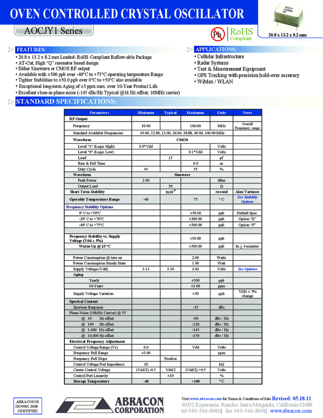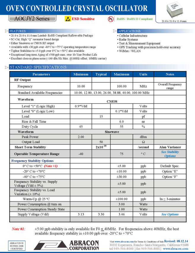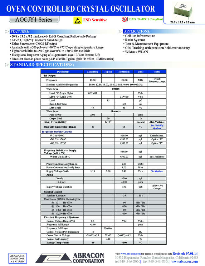 Controlled Oscillator 10MHz VC-OCXO Sinewave 5-Pin Tray