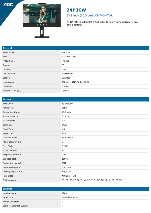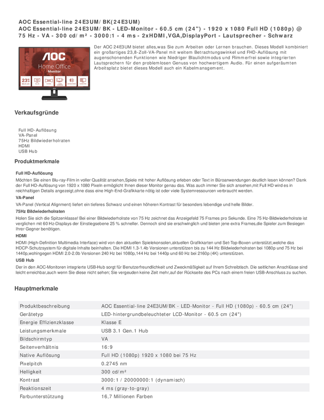 AOC AOC Essential-line 24E3UM/BK - monitor LED