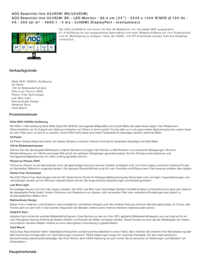 AOC AOC Essential-line U34E2M/BK - monitor LED