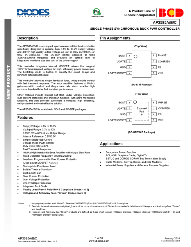 Układ scalony; AP3503MP-G1; DC/DC; 4,5-18V; 1 kanał; stabilizator napięcia; step down; PMIC; 3A; 925mV-; 340kHz; SO8; SMD; RoHS