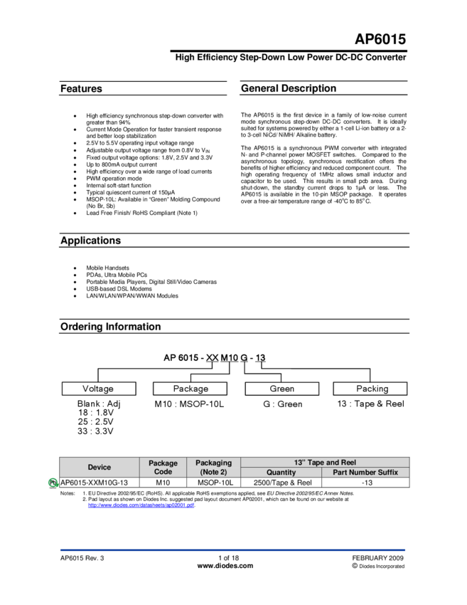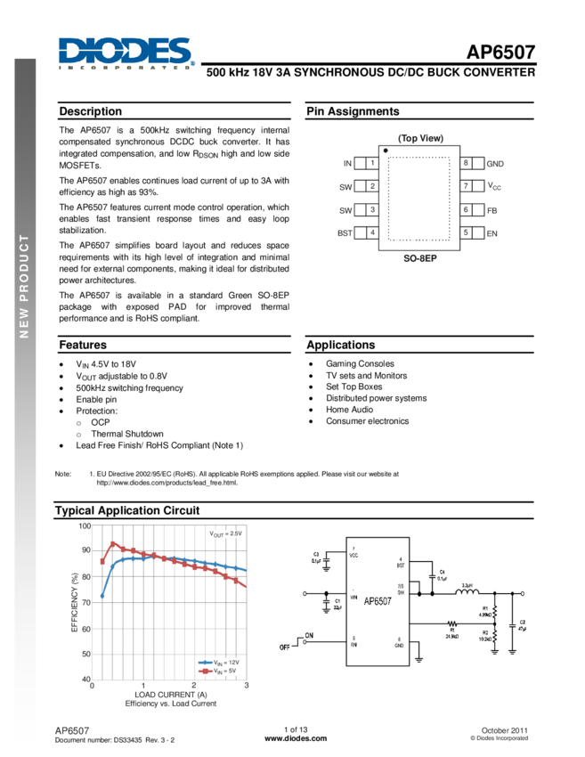 500kHz 18V 3A Synchronous DC/DC Buck Converter
