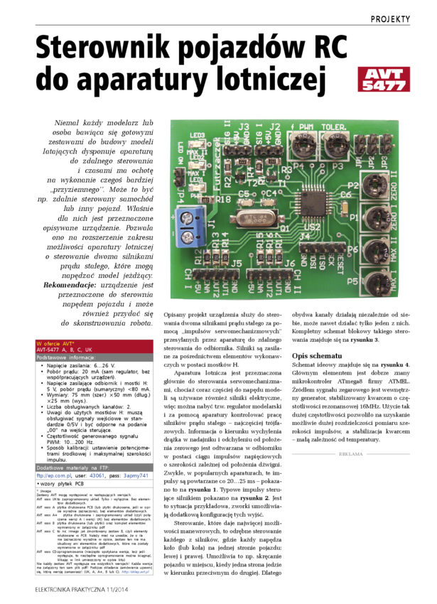 AVT5477 Sterownik pojazdów RC do aparatury lotniczej
