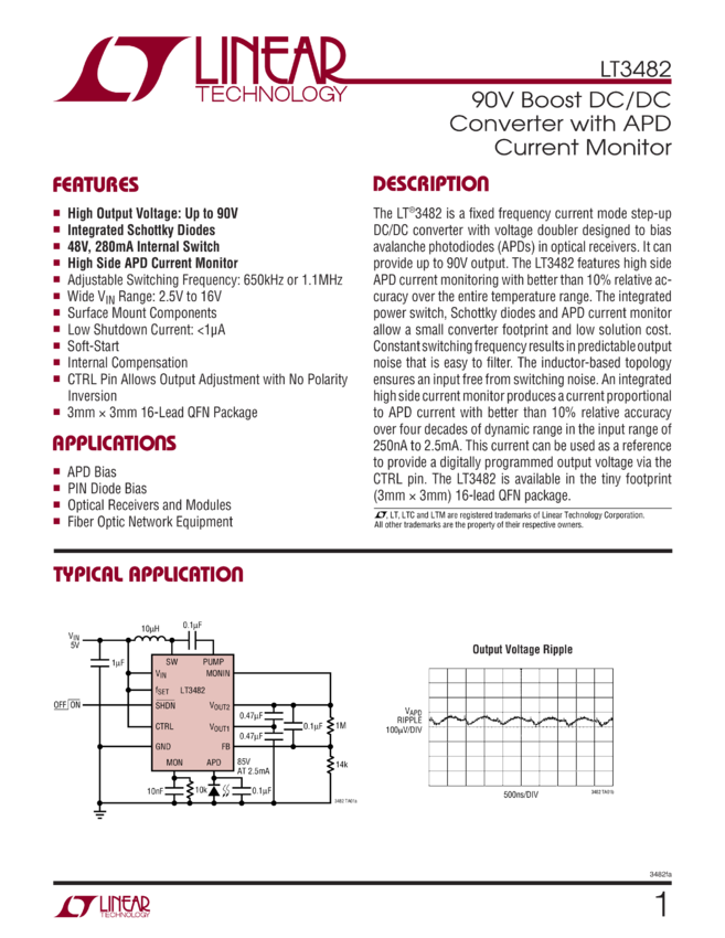 90V Boost DC/DC Converter with APD Bias Current Monitor