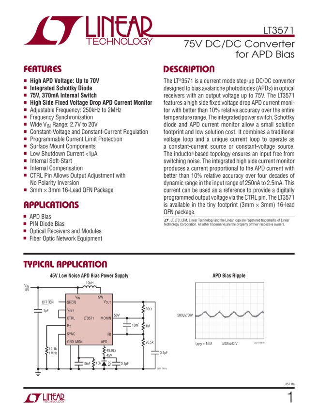 75V DC/DC Converter for APD Bias