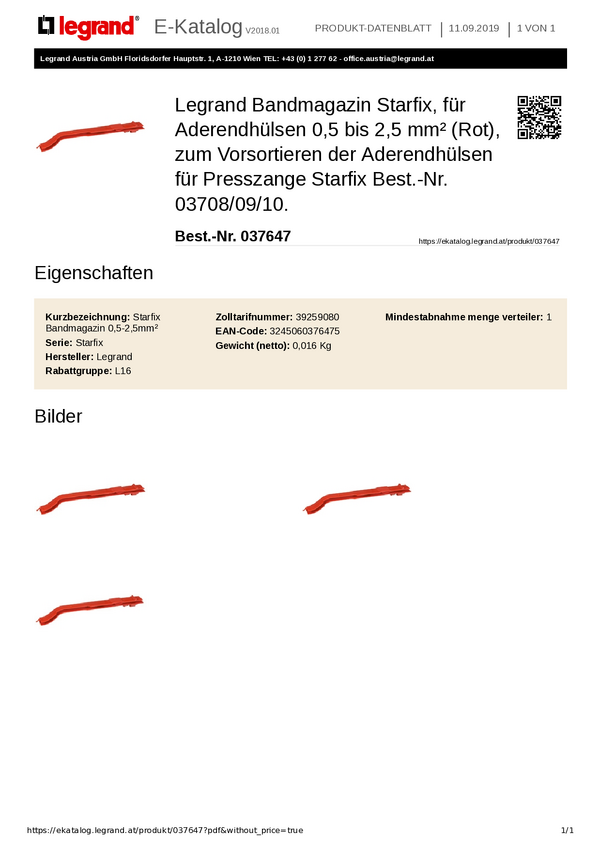 Legrand 037647 Aplikator 2.5 mm² czerwony 1 szt.