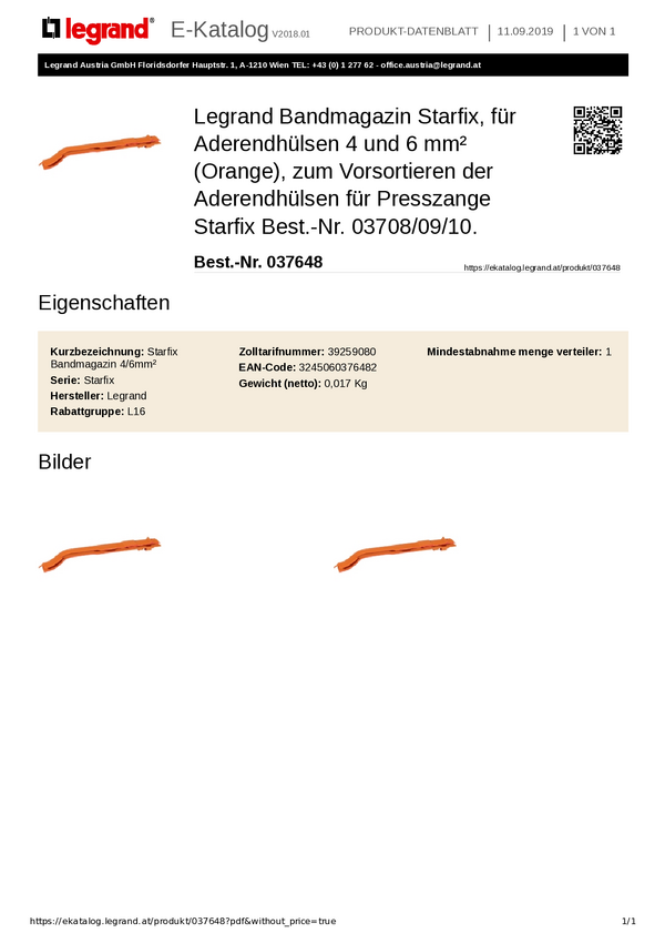 Legrand 037648 Aplikator Legrand 037648, 6 mm², 1 szt.