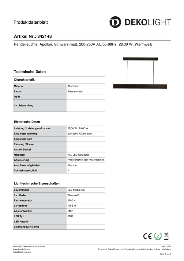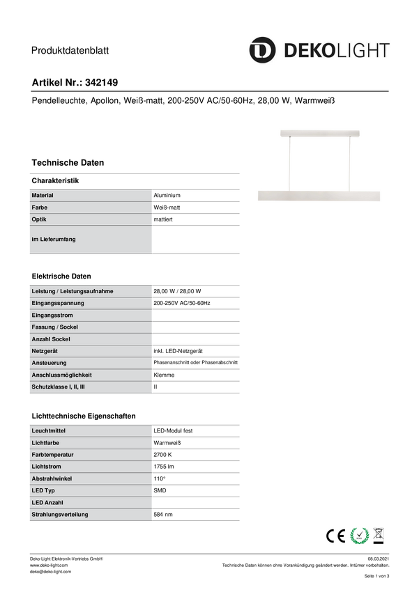 Lampa sufitowa, podwieszana Deko Light Apollon 342149 LED wbudowany na stałe 28 W biały (matowy)