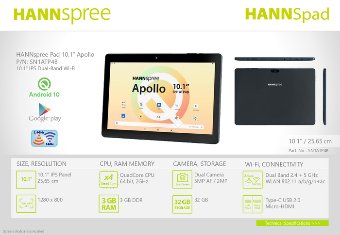 Hannspree Apollo SN1ATP4B 32 GB czarny Tablet 25.7 cm (10.1 cal) 2 GHz MediaTek Android™ 10 1280 x 800 Pixel