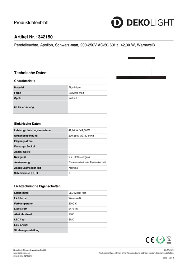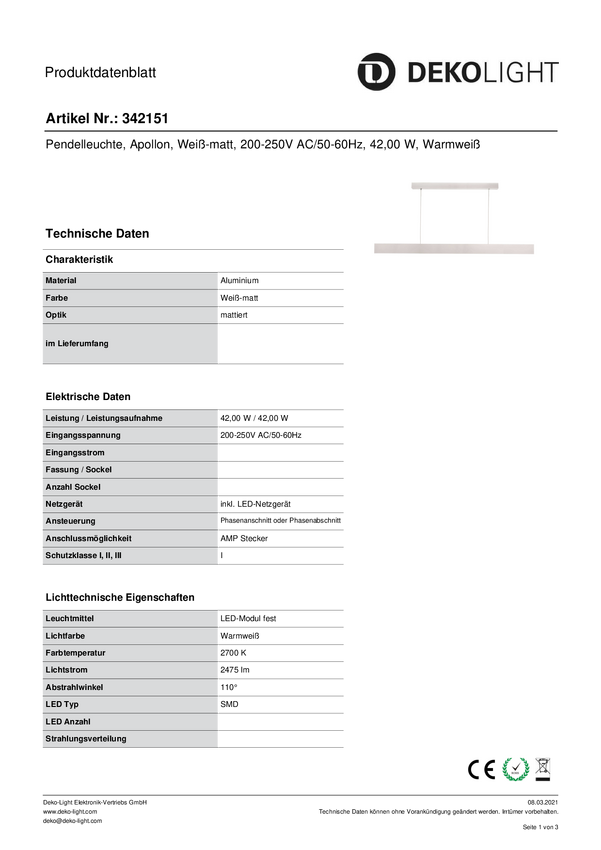 Lampa sufitowa, podwieszana Deko Light Apollon 342151 LED wbudowany na stałe 42 W biały (matowy)