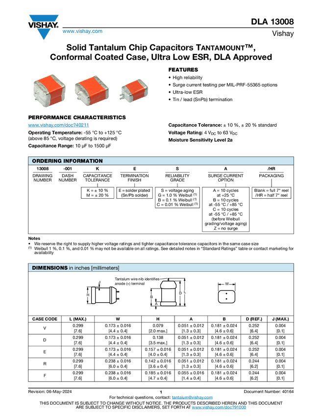 Solid Tantalum Chip Capacitors, TANTAMOUNT™, Conformal Coated Case, Low ESR, DLA Approved
