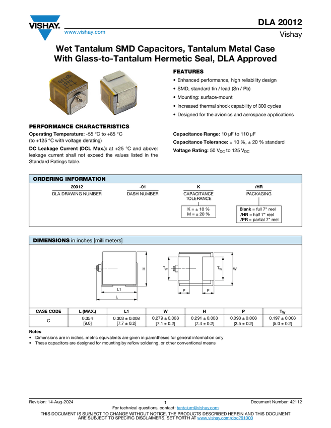 Wet Tantalum SMD Capacitors, Tantalum Metal Case With Glass-to-Tantalum Hermetic Seal, DLA Approved