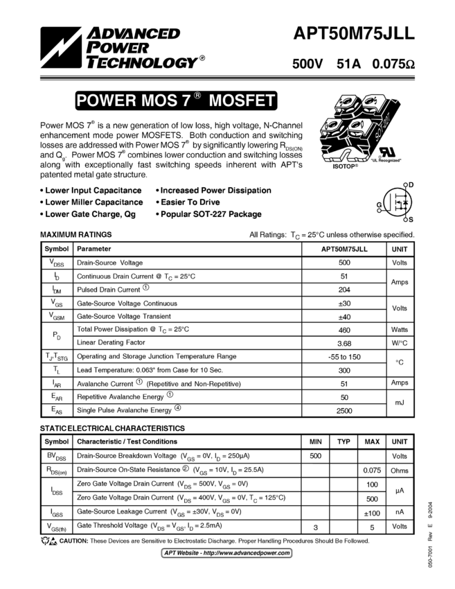 APT50M75JLLU2 Datasheet