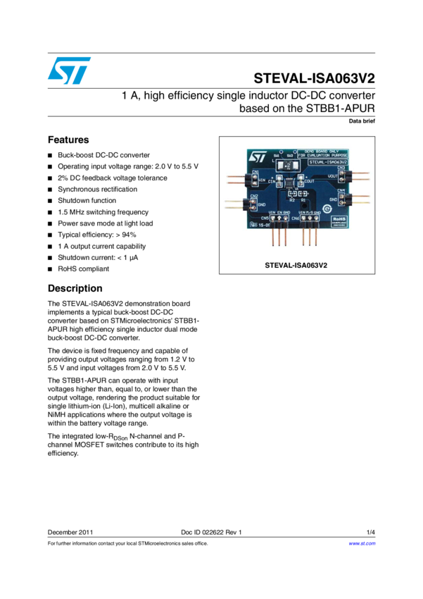1 A, high efficiency single inductor DC-DC converter based on the STBB1-APUR