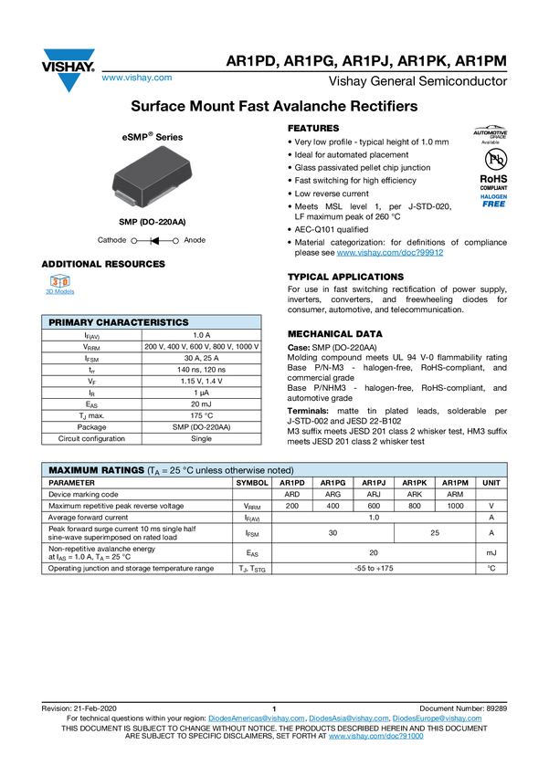 AR1100 Resistive USB and RS-232 Touch Screen Controller Data Sheet