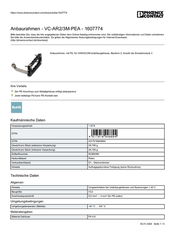 Phoenix Contact VC-AR2/3M-PEA Złącze przemysłowe Zawartość: 1 szt.
