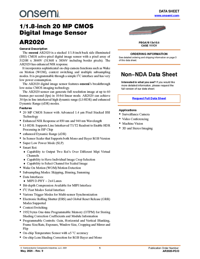 Image Sensor, 20 MP, Rolling Shutter, Hyperlux™ LP