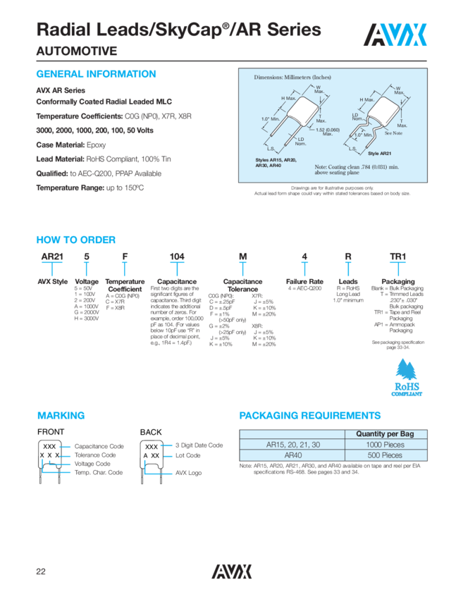 Cap Ceramic 10pF 200V C0G 5% Radial 5.08mm 125°C Bulk