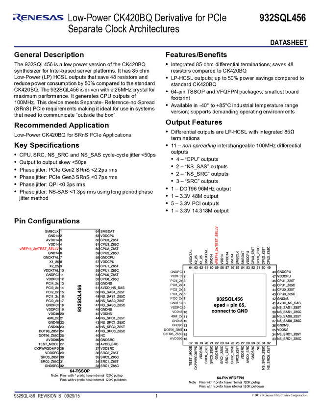 Low-Power CK420BQ Derivative for PCIe Common Clock Architectures