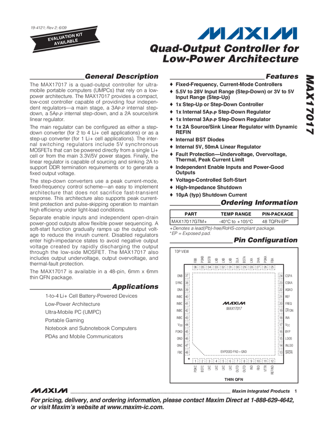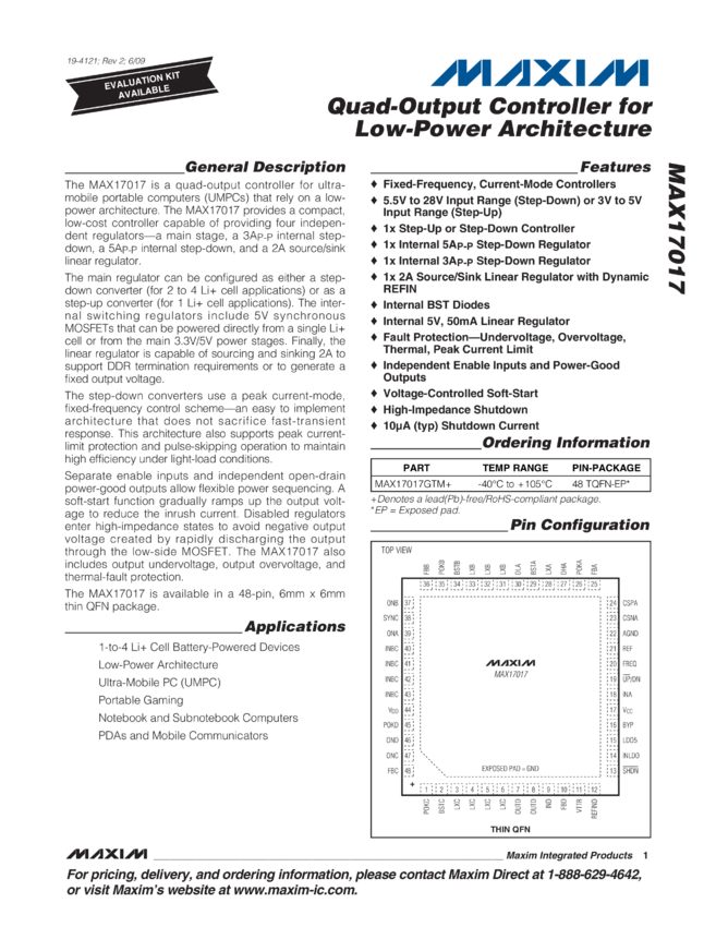 MAX17017 Quad-Output Controller for Low-Power Architecture