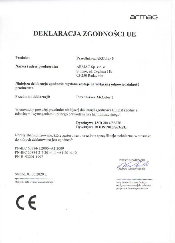 ARMAC przedłużacz 3-GNIAZDA CZARNY ARColor3