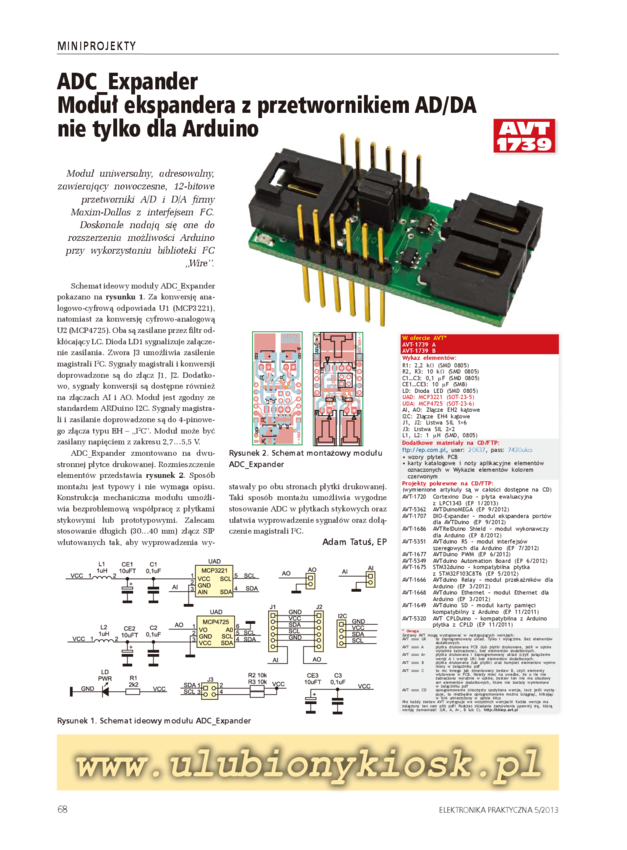 AVT1739 ADC_Expander - moduł ekspanera z przetwornikiem AD/DA nie tylko dla Arduino